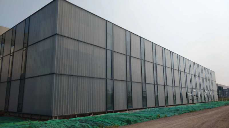U型玻璃與通長平板玻璃豎窗結(jié)合,采光達(dá)到了90%,工廠透亮實現(xiàn)節(jié)能的效果。