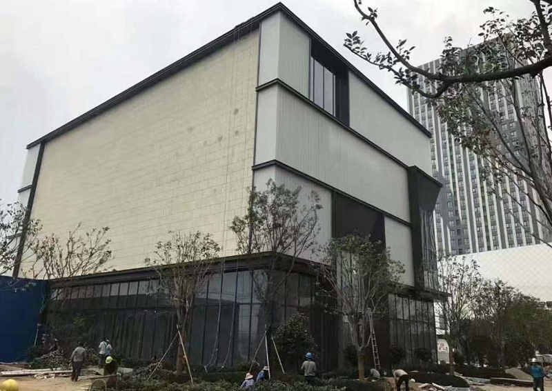 江蘇徐州萬科售樓部項目,該工程采用超白條紋蒙砂U型玻璃1800平。
