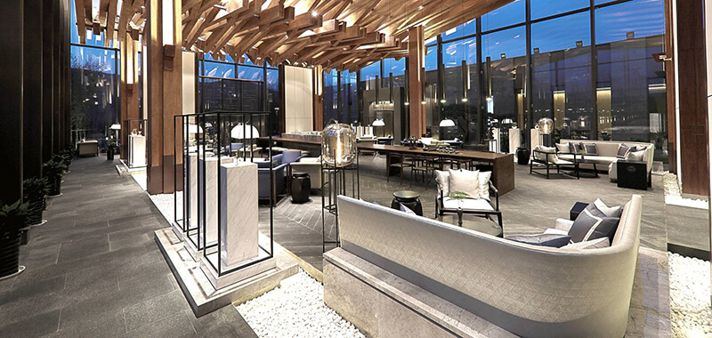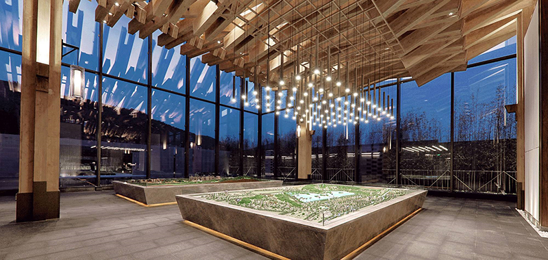 設(shè)計元素,我們以“國畫留白”的哲學(xué)境界,巧妙地領(lǐng)銜貫穿于建筑本身。極具張力的天花造型相輔相成, “無畫處皆成佳境,行得之于形外”的氣勢,渾然天成。通過簡素,質(zhì)樸寂靜,反映出東方氣質(zhì)的精髓,方正嚴(yán)整、古樸雅奢。
