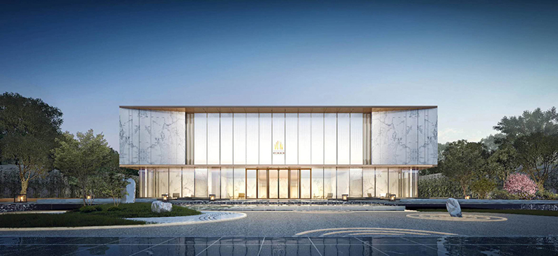 采用超白玻蒙砂U型玻璃,雙層安裝翼在接縫處成對排列,1.5米位置使用裝飾立柱,達(dá)到分隔效果。