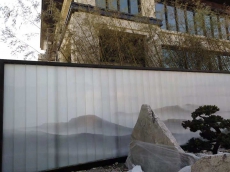 河南鄭州藍(lán)光雍錦園背景墻水墨畫U型玻璃項目