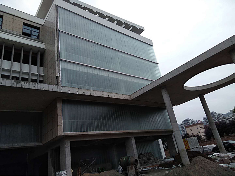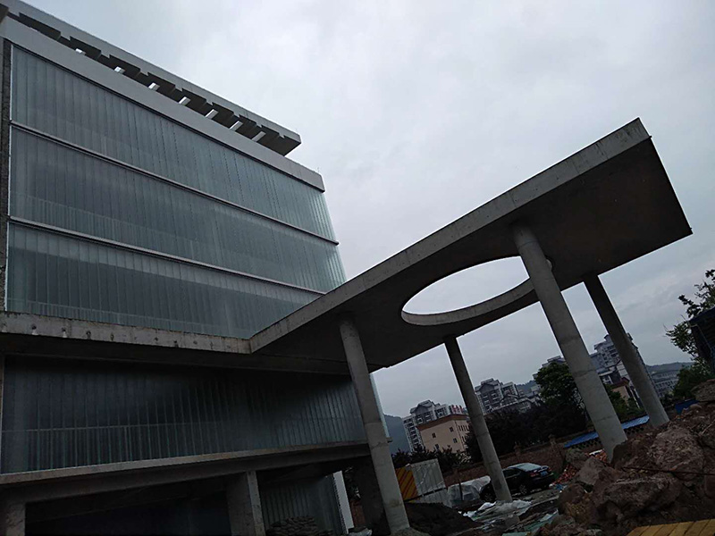 重慶石柱縣民族文化中心1500方彩色U型玻璃(淡藍(lán)色)工程
