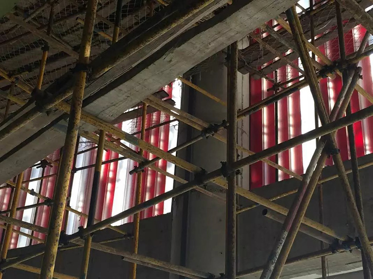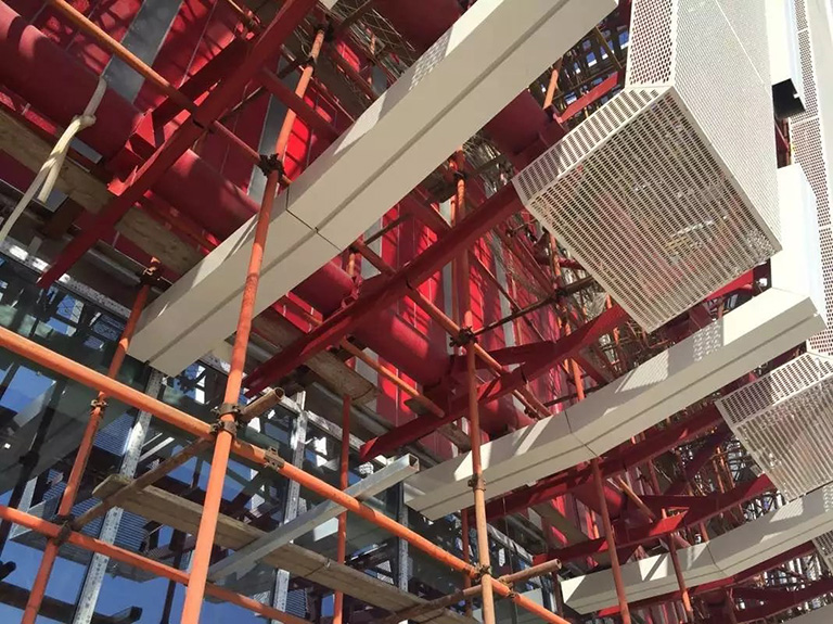 一般多采用穿孔鋁板,但是這種材料造價較高。我們選擇了更加環(huán)保的水泥纖維板,造價不僅大大降低,而且其更加結(jié)實、平整。”