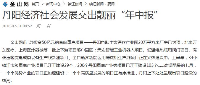 總投資50億元的省級重點項目——丹陽魚躍生命醫(yī)療產(chǎn)業(yè)園20萬平方米廠房已封頂,北京萬東醫(yī)療、上海醫(yī)療器械等一批上下游項目落戶園區(qū);天宏智能工業(yè)機器人項目、低溫絕熱瓶用閥門項目、高低壓輸變電成套設備生產(chǎn)線新建項目、全自動多功能醫(yī)用清洗機生產(chǎn)線項目正在火熱建設中。