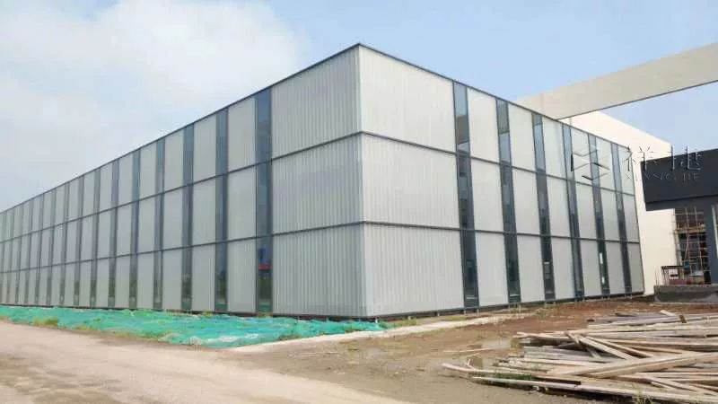 U型玻璃與通長平板玻璃豎窗結(jié)合,采光達到了90%,工廠透亮實現(xiàn)節(jié)能的效果。