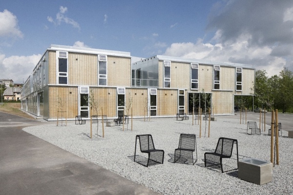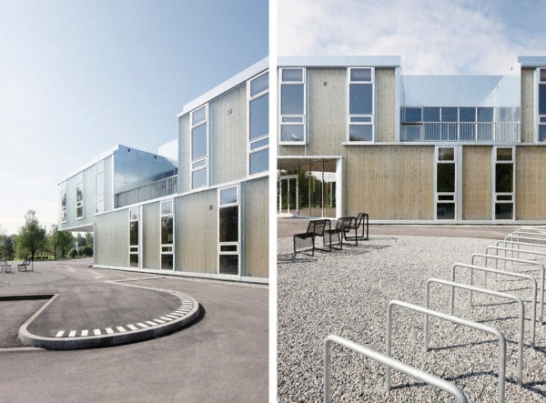 音樂和藝術(shù)學(xué)校的外立面是木墻和U型玻璃共同組成的雙層可呼吸式外墻系統(tǒng)。