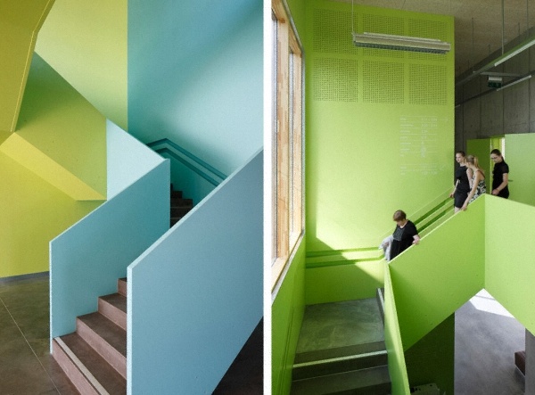被動式能源調(diào)控。此外建筑師發(fā)現(xiàn)在教育機構(gòu)很多主要材料都彰顯自己色彩和肌理的本