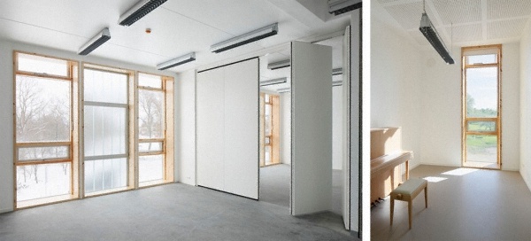 大的音樂練習(xí)廳,一側(cè)的采光口開向內(nèi)部的日光庭院。