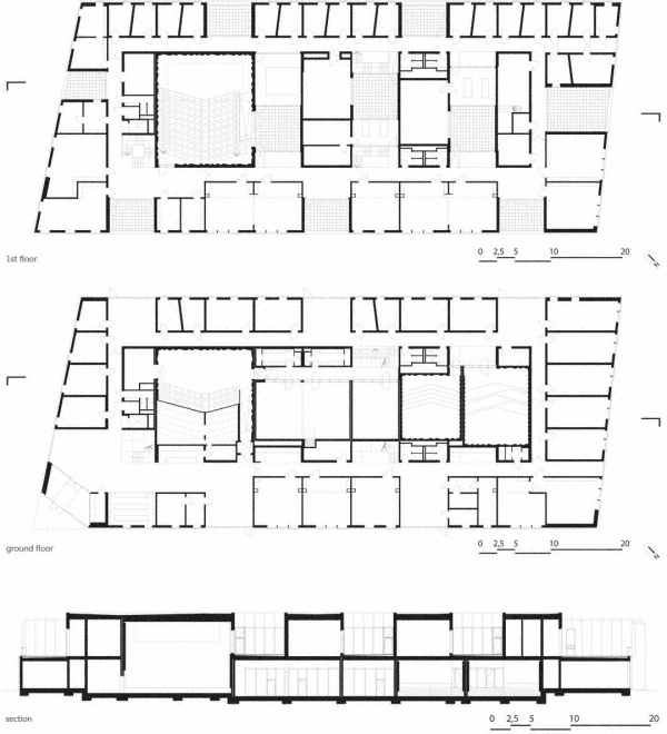 音樂和藝術(shù)學(xué)校過去一直是分開的兩所學(xué)校,直到現(xiàn)在才被融合在一個建筑中。教室分布
